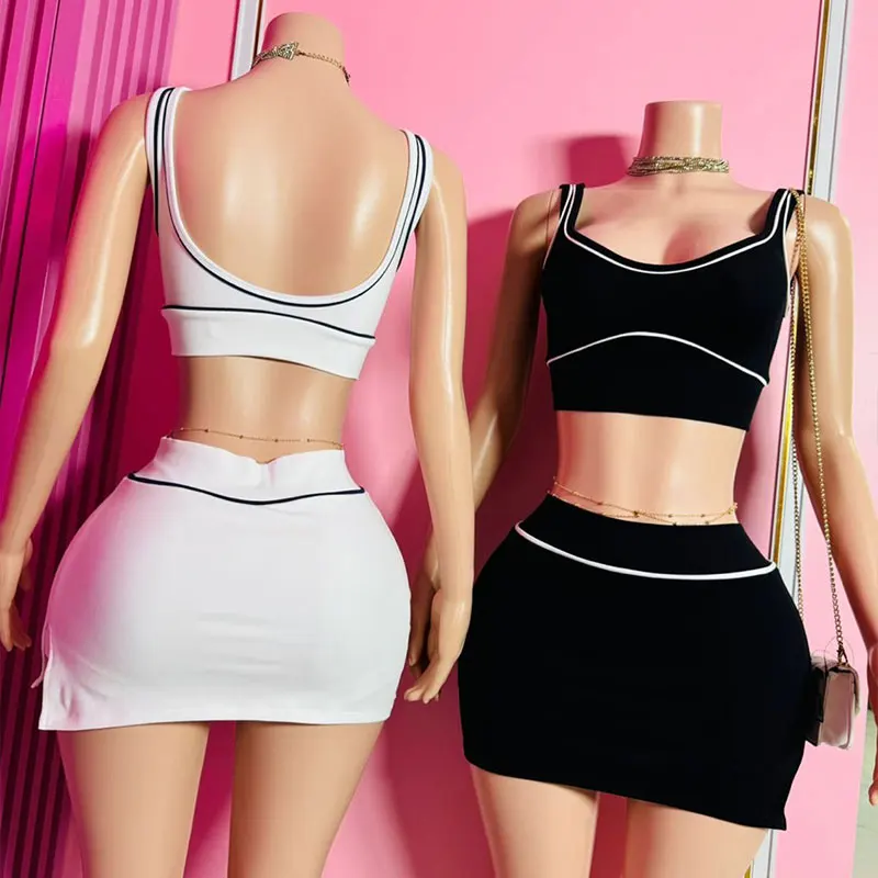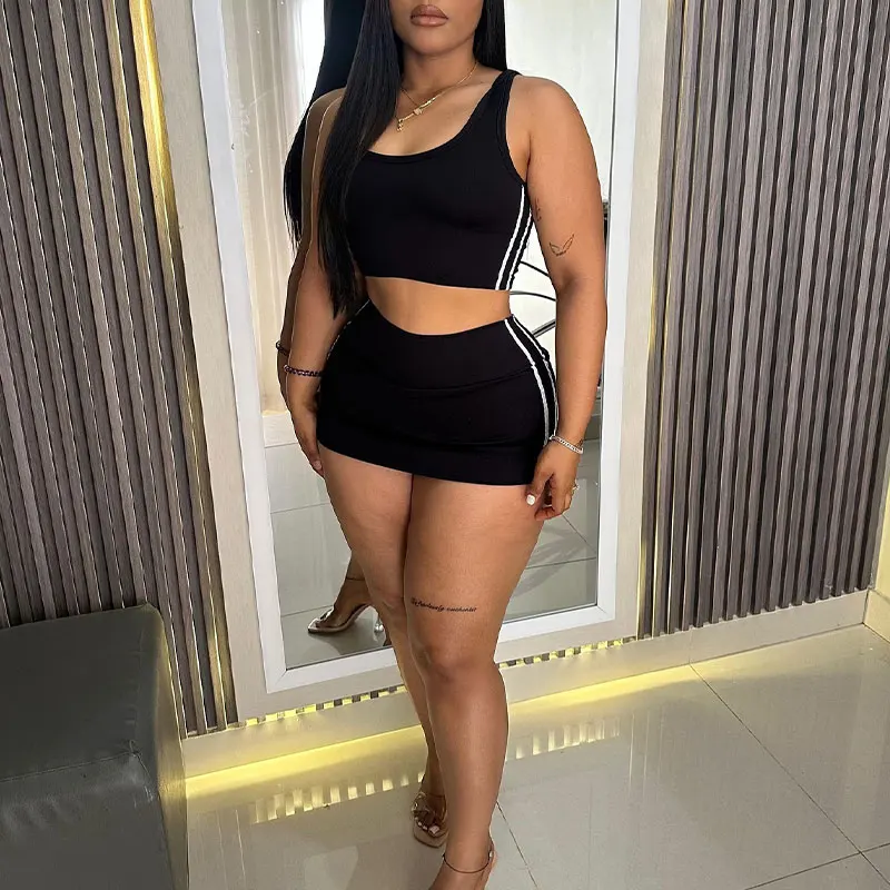 Huili Manufacturers Custom Logo Ribbed Loungewear Spaghetti Strap Crop Top & Mini Shirt Two Piece Cotton Women's Summer Set